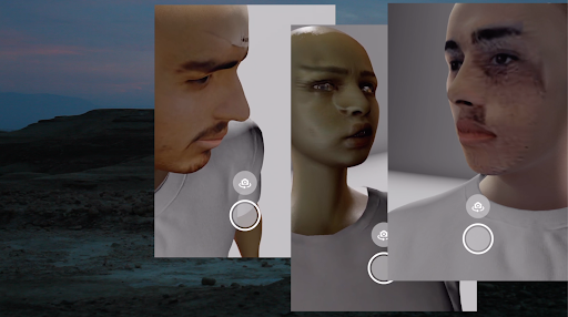 The avatars are hyper-realistic 3D figures — they appear in front-facing camera screens. Sharp nostalgia for the future colors the resoluteness embedded in the pinpoints of their eyes. Are they real people? Or are they lost time-travelers, stuck between dimensions, in exile from time itself?