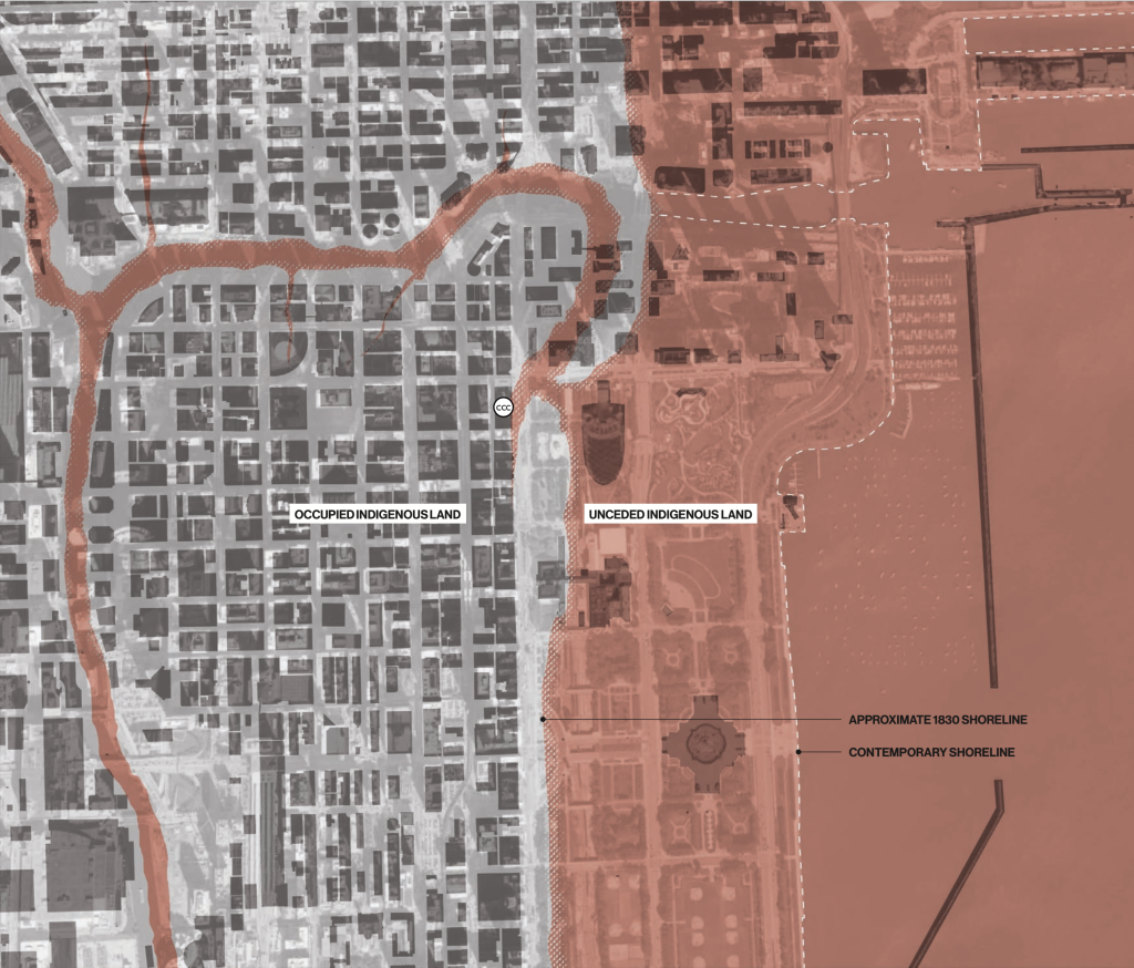 Today’s Millenium Park, Grant Park, and Burnham Park is territory that was at once new land and unceded land.
